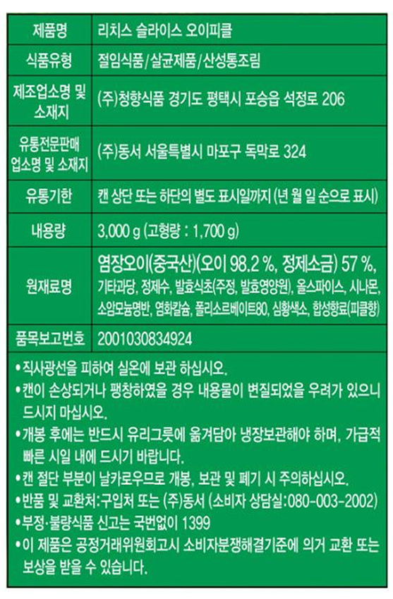 리치스 피클(슬라이스 3Kg/EA)  업소용 반찬 이미지
