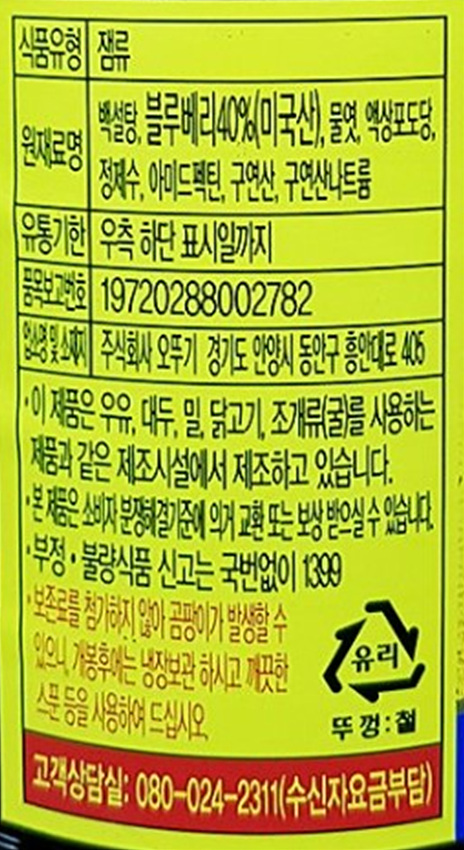 오뚜기 블루베리잼(500g/EA) 이미지