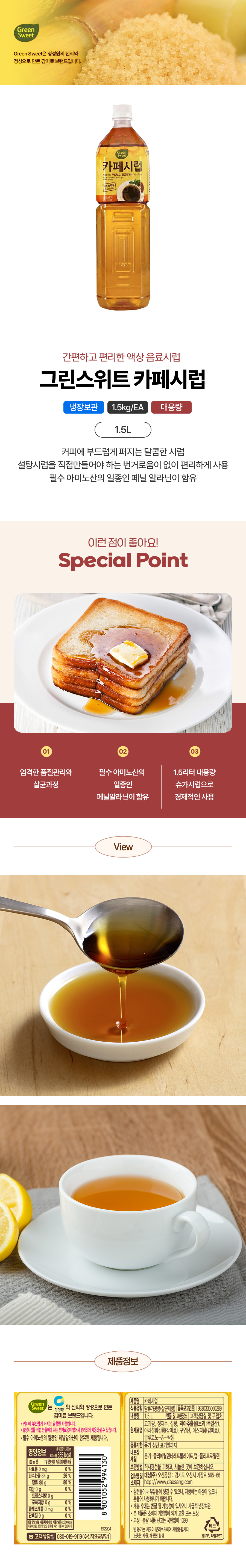 그린스위트 카페시럽(갈색 1.5L/EA) 카페 시럽 대상