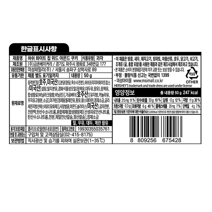 허쉬 화이트칩위드아몬드쿠키(50g*10입 500g/EA)