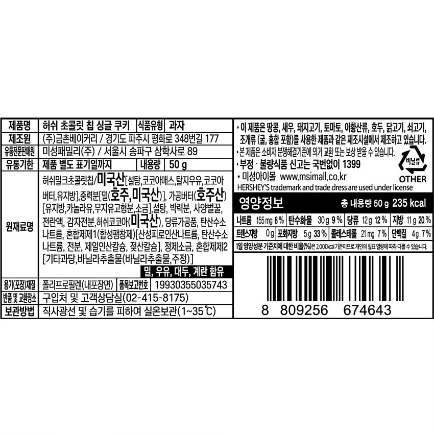 허쉬 초코칩싱글쿠키(50g*10입 500g/EA)