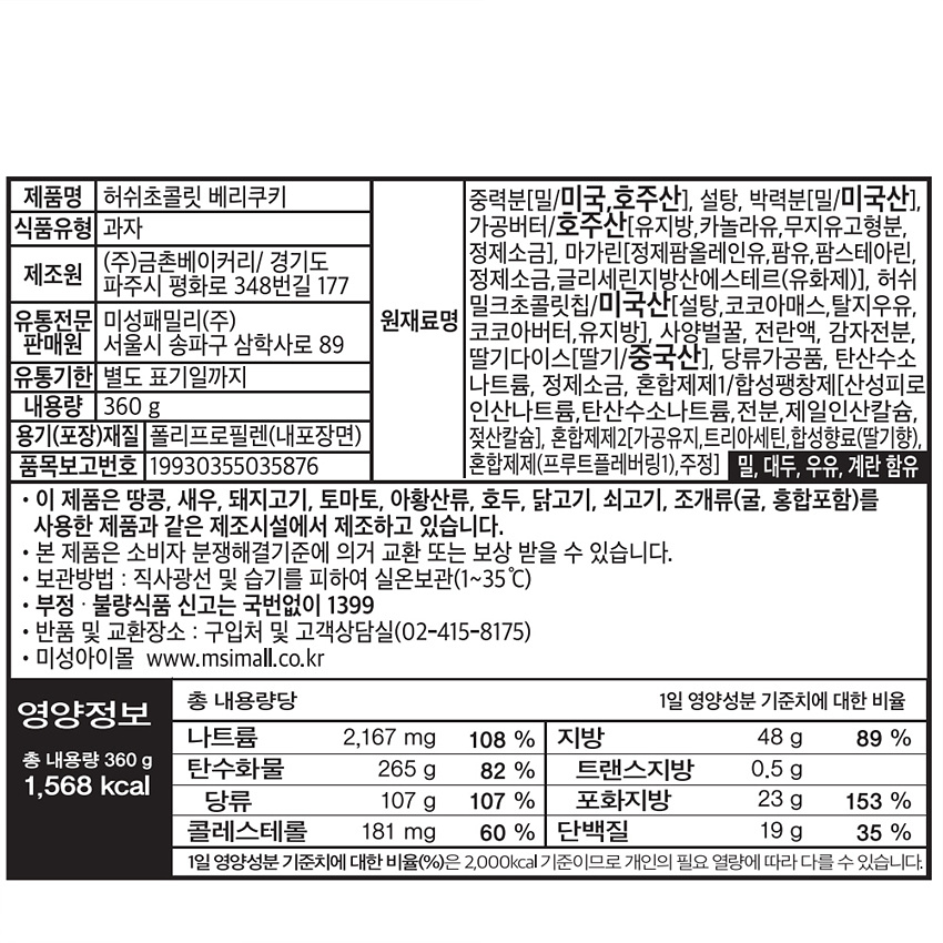 허쉬 초콜릿베리쿠키(12g*30개 360g/BOX)