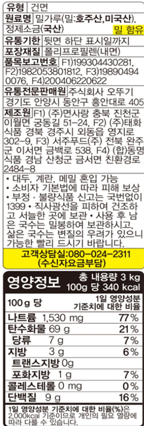 오뚜기 옛날소면국수(3Kg/EA) 이미지