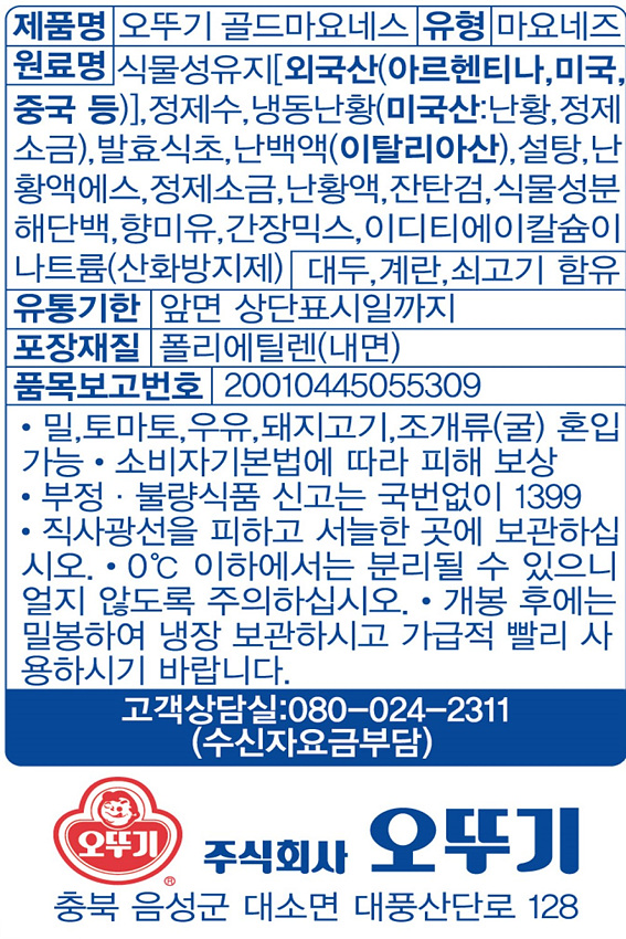오뚜기 마요네즈(골드 파우치 1Kg/EA)