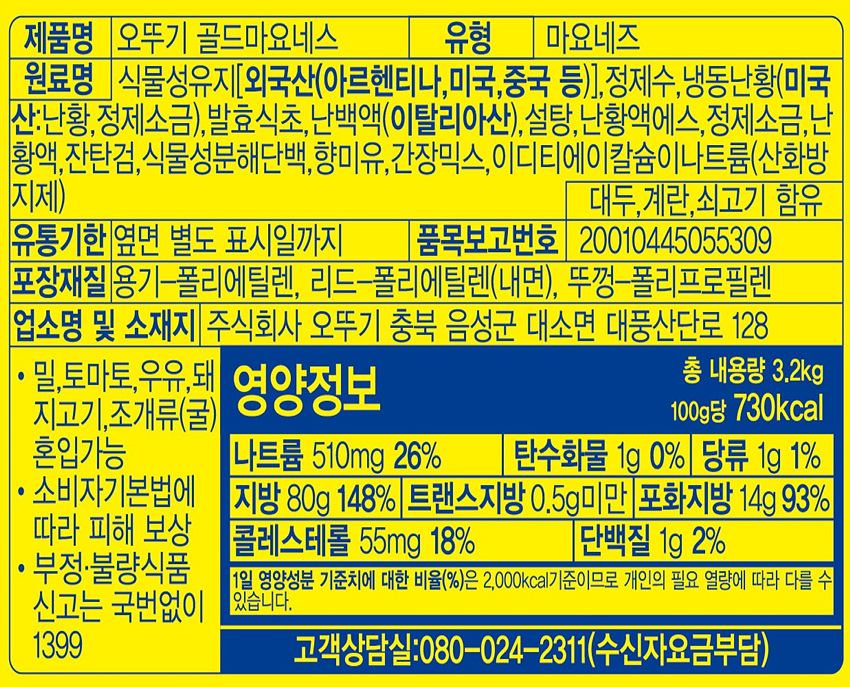 오뚜기 마요네즈(은박 3.2Kg/EA)
