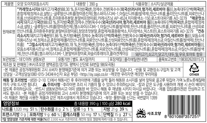 사조오양 모둠 소시지(390g/EA) 소세지