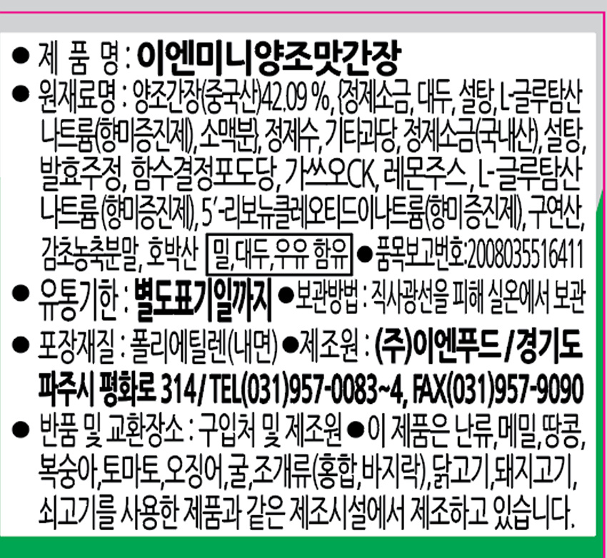 이엔푸드 양조간장(6g*185입 일회용 1.4Kg/EA)