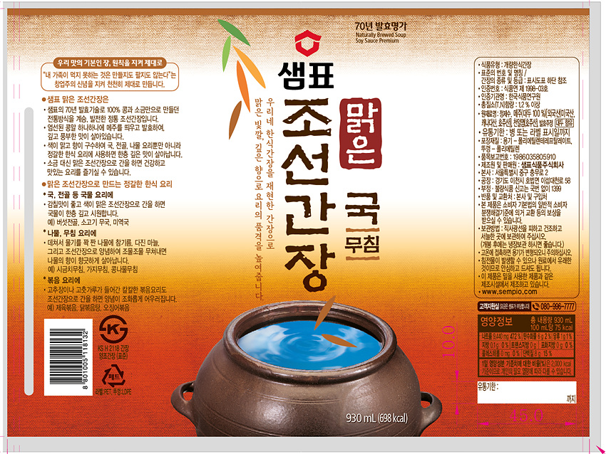 샘표 맑은조선간장(930ML/EA) 이미지