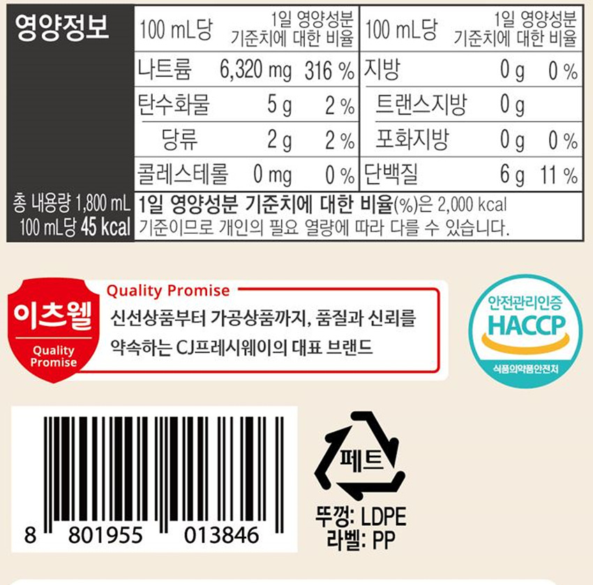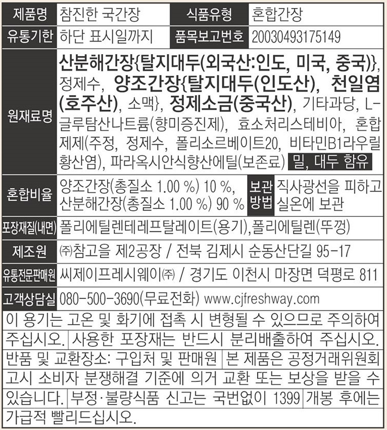 이츠웰 참진한국간장(1.8L/EA) 이미지
