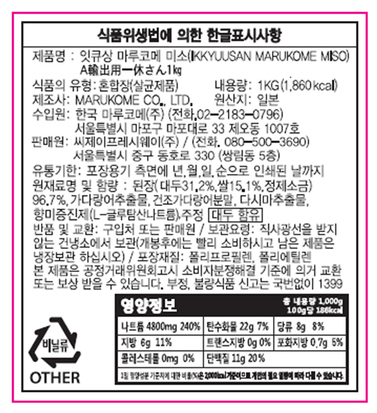 마루코메 미소 된장(시로미소_잇큐상 1Kg/EA)