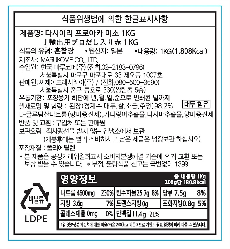 마루코메 미소 된장(아까미소 1Kg/EA)