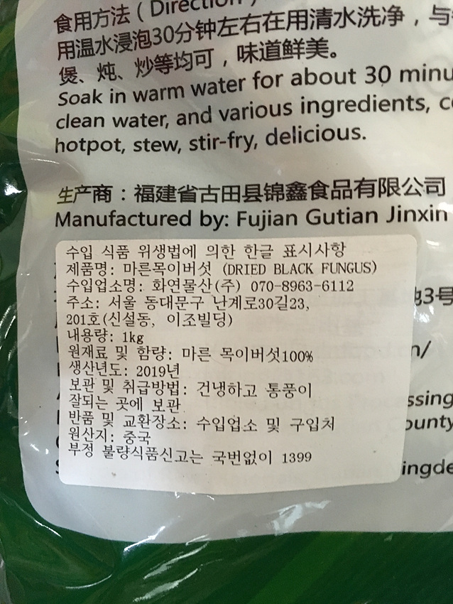 건목이버섯(흑색_黑木耳 1Kg/EA)