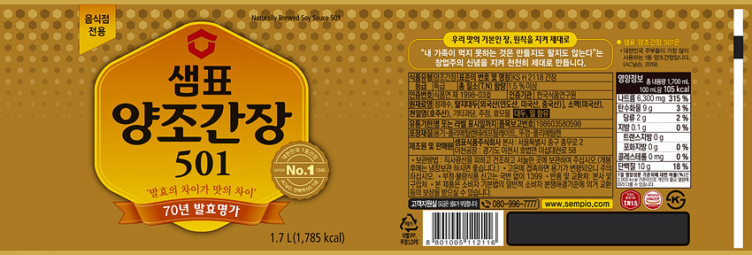 샘표식품 양조간장501(1.7L/EA) 이미지