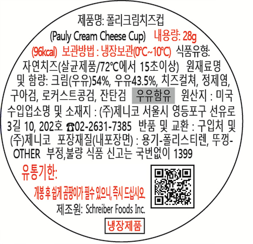 제니코 크림치즈(폴리컵_28g*20입 560g/EA) 이미지