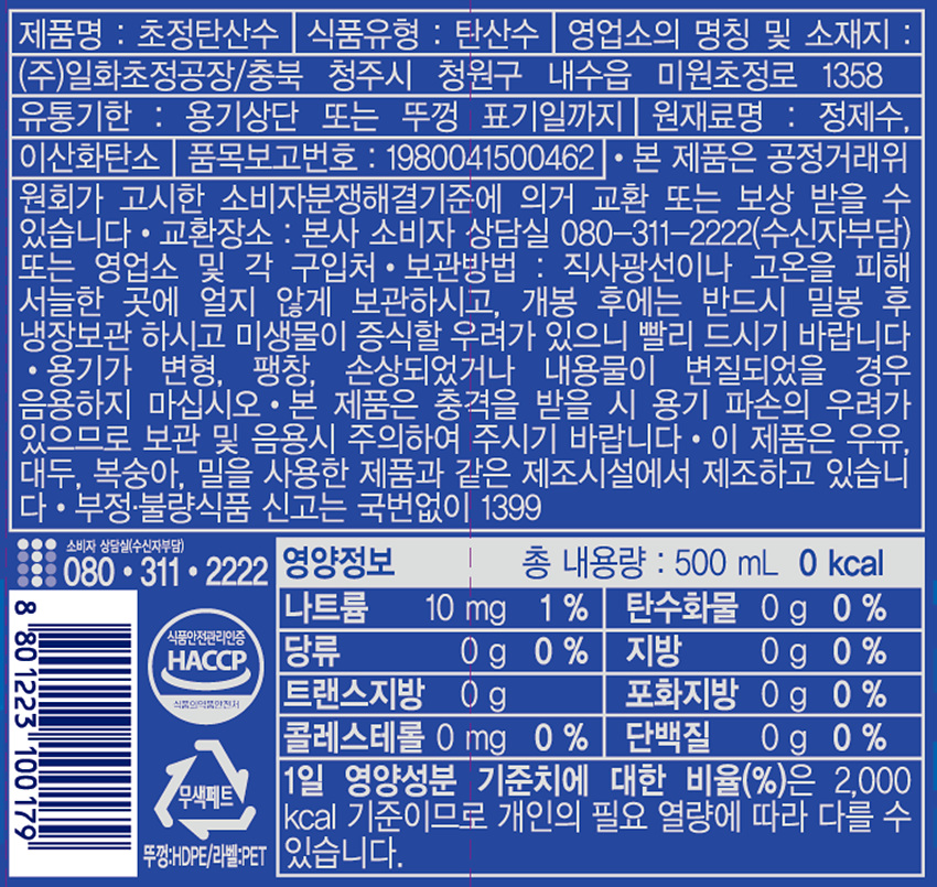 일화 초정탄산수(500ml 500g/EA) 이미지