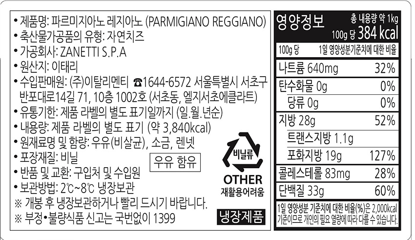 ZANETTI 파르마지아노레지아노치즈(블럭_1.2±0.2kg 1.2Kg/EA)