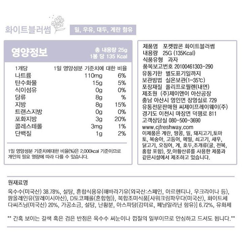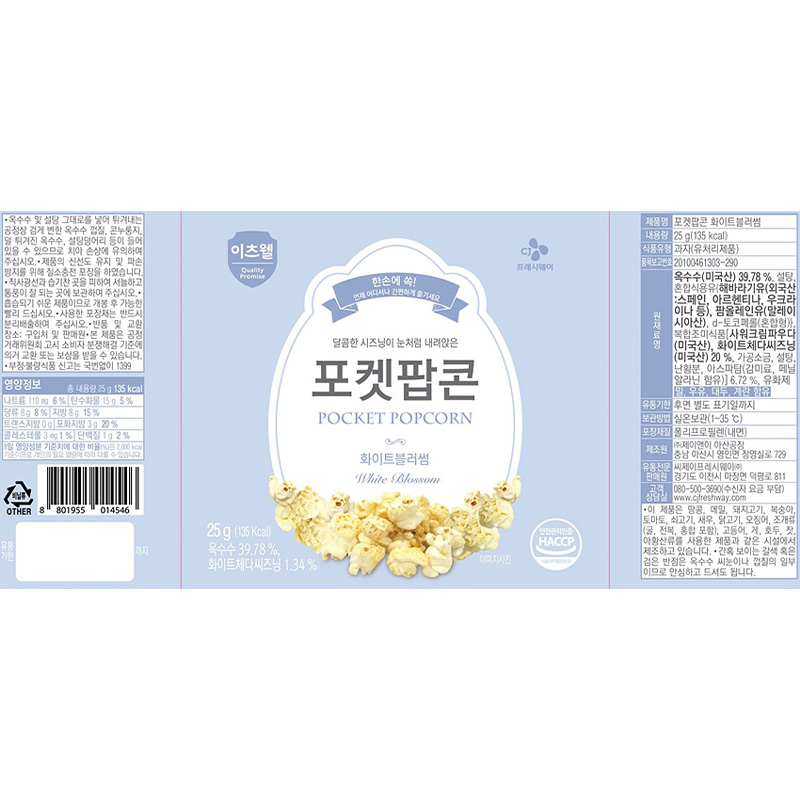 이츠웰 포켓팝콘(화이트블러썸 25g*30EA/BOX) 이미지