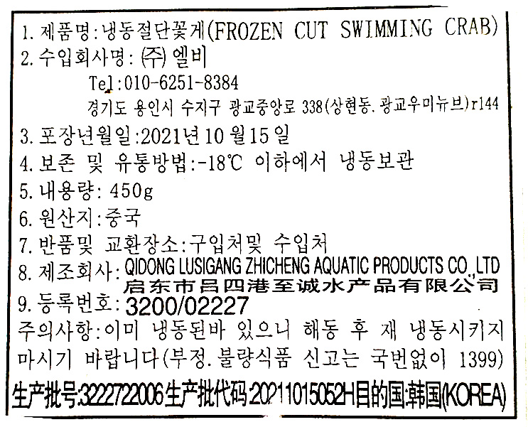 절단꽃게(2L 450g/EA)/중국산 이미지