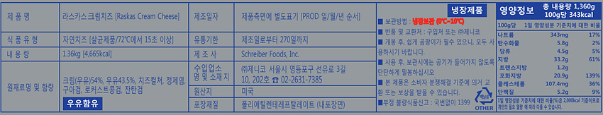 라스카스 크림치즈(1.36Kg/EA) 이미지