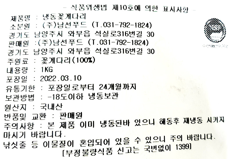 MK씨푸드 꽃게다리(1Kg/EA)/국내산