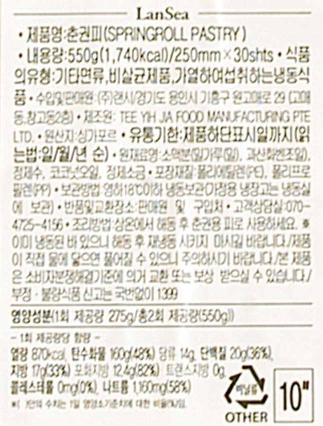 랜시푸드 춘권피(10인치_18g±1g*30입 550g/EA)