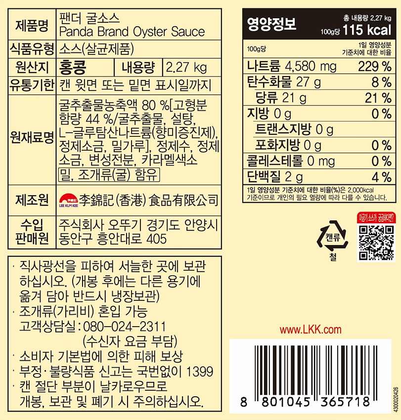 이금기 굴소스(팬더 2.268Kg/EA)