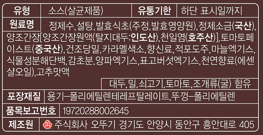 오뚜기 우스타소스(2.1Kg/EA) 이미지