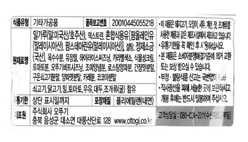원재료명 및 함량