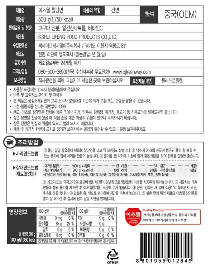 이츠웰 찰당면(500g/EA)