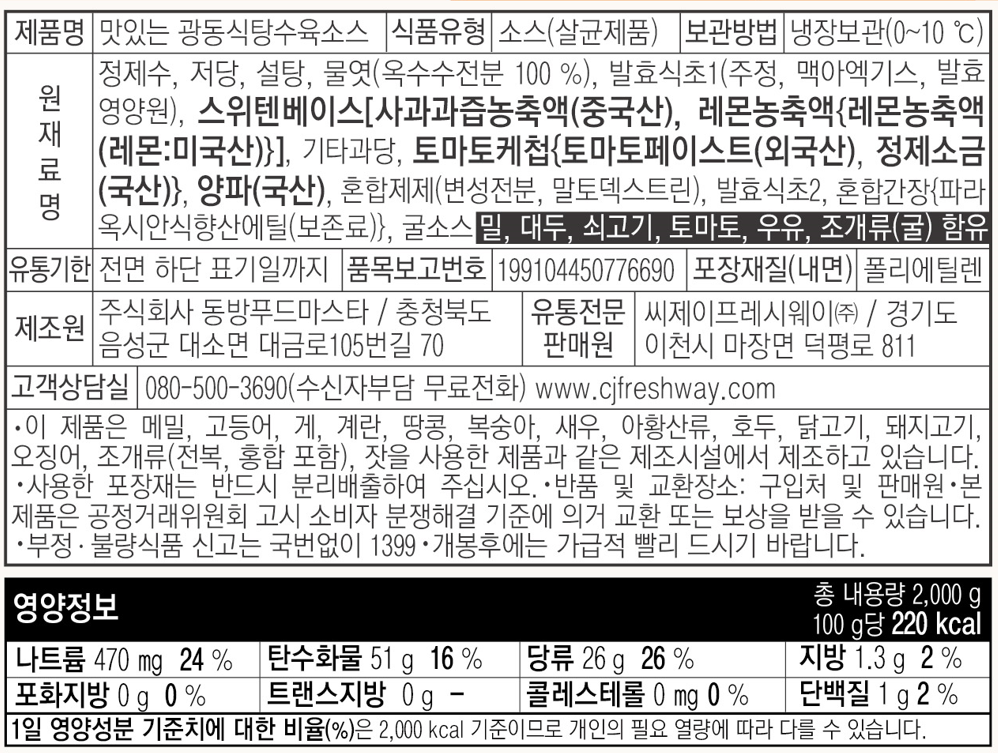 이츠웰 맛있는탕수육소스(광동식 2Kg/EA)