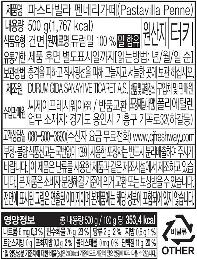 파스타빌라 펜네(직수입 500g/EA)