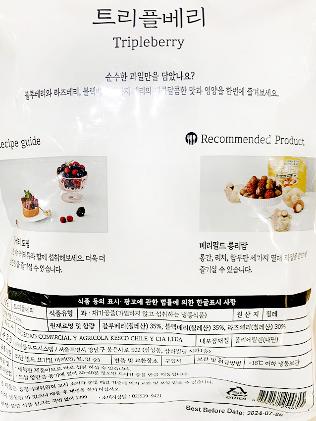 냉동 트리플베리(3종혼합_블루+블랙+라즈베리 1Kg/EA)/칠레산