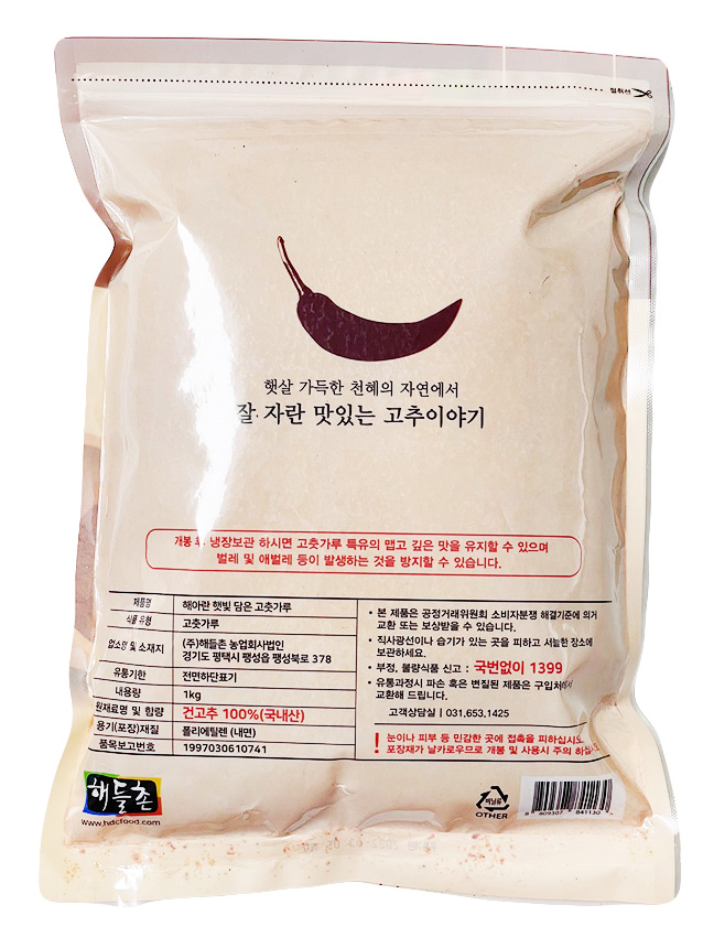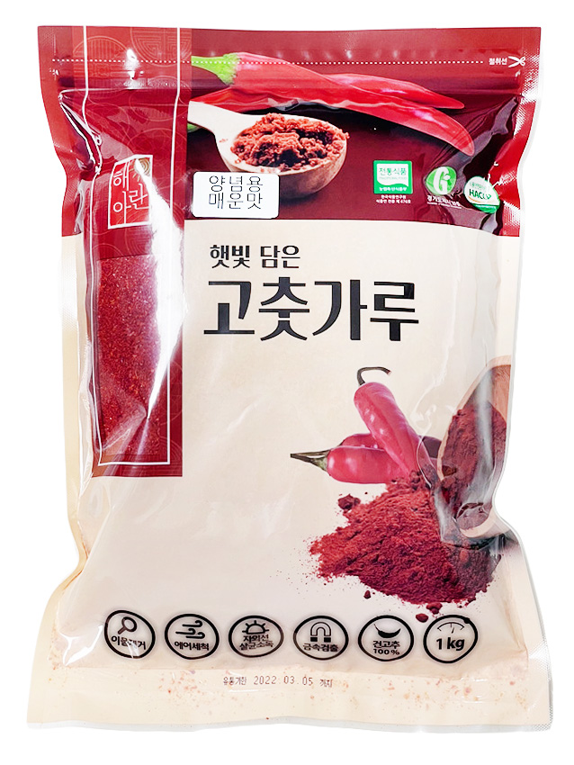 해아란 햇빛담은고춧가루(중간,양념용,매운맛 1Kg/EA) 국내산 고추가루