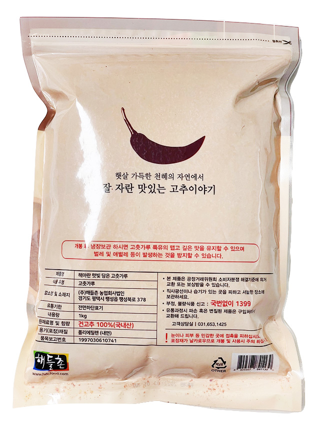 해아란 햇빛담은고춧가루(굵은,김치용,순한맛 1Kg/EA) 국내산 고추가루
