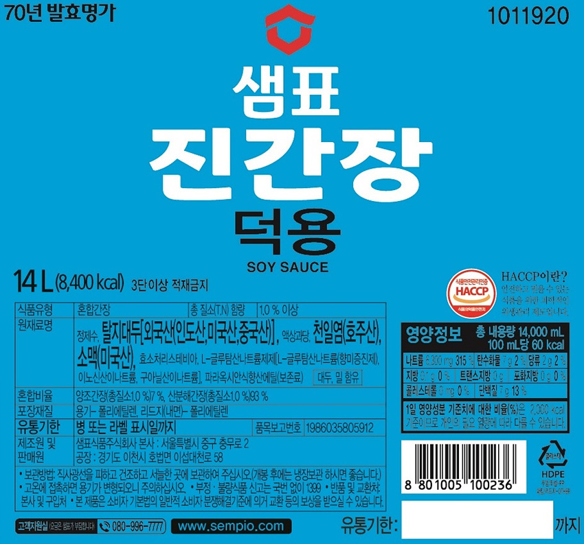 샘표 진간장(덕용 14L/EA)