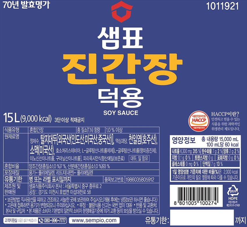 샘표 진간장(15L_덕용 15L/EA)