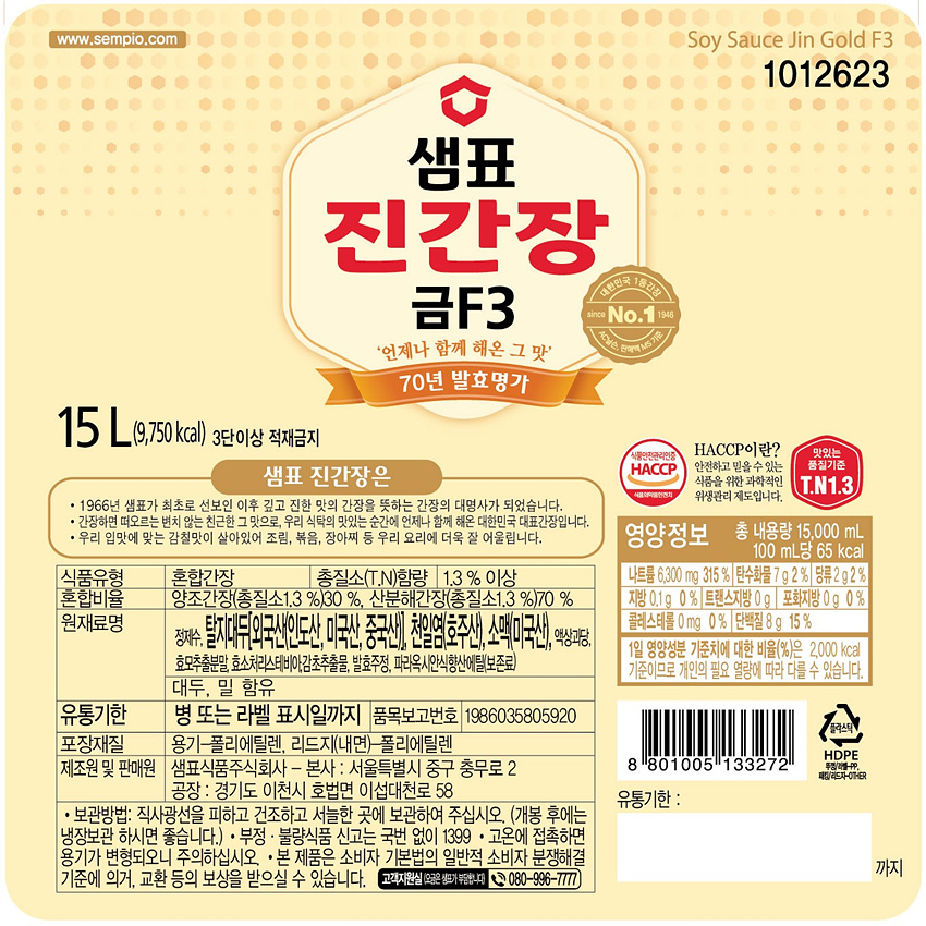 샘표 진간장(금F3 15L/EA)