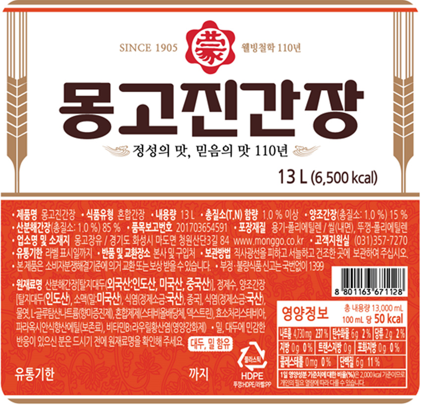 몽고장유 진간장(부천몽고 13L/EA) 이미지