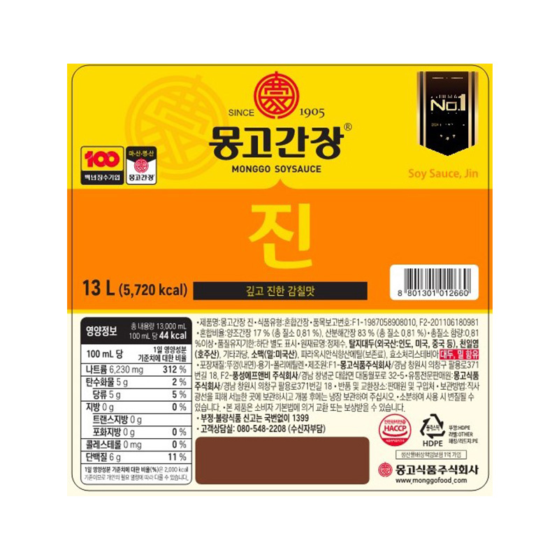 몽고식품 진간장(마산몽고 13L/EA) 이미지