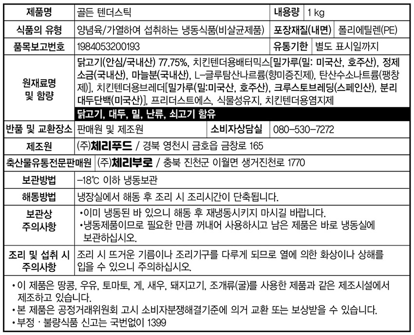 체리푸드 골든텐더스틱(1Kg/EA) 이미지