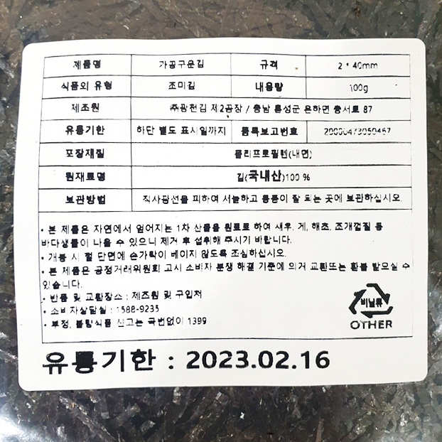 광천김 기자미노리(2*30mm 고명용 100g/EA)/국내산