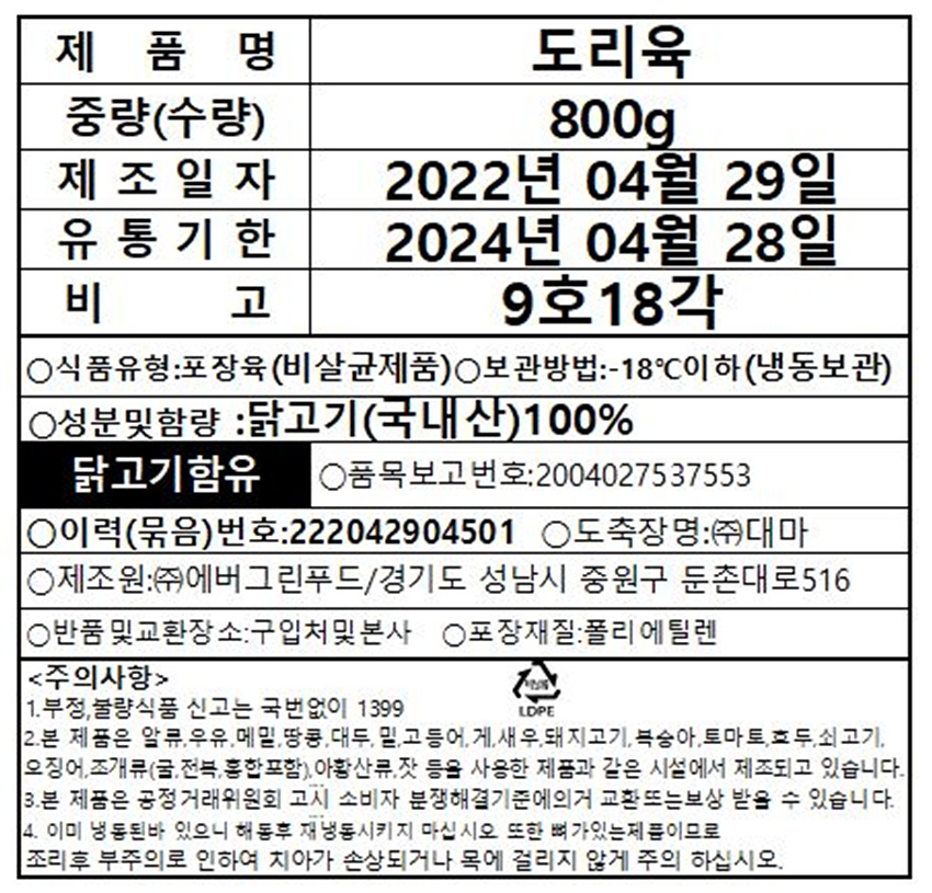 닭도리(8~9호_18각도리_껍질있음_신규 800g/EA)/국내산