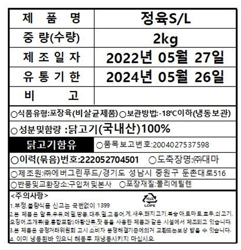본 제품은 제품입고일별 유통기한 또는 품질유지기한이 상이하므로, 필요시 고객센터로 문의하여 주십시오. 제조일로부터 730일 까지