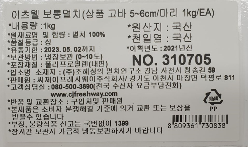 이츠웰 보통멸치(상품 고바_5~6cm/마리 1Kg/EA)/국내산