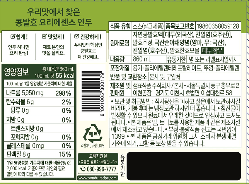 샘표식품 연두(순 860ml/EA) 이미지