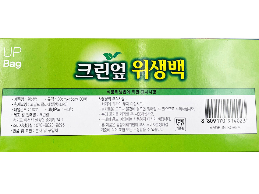 크린엎 위생백(대_30*45cm_100입 EA)