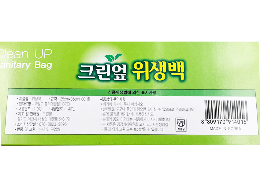 크린엎 위생백(중_25*35cm_100입 EA)