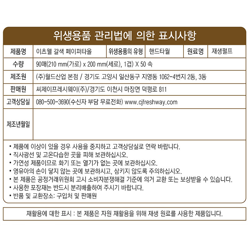 이츠웰 갈색페이퍼타올(핸드타올_4500매 BOX) 이미지
