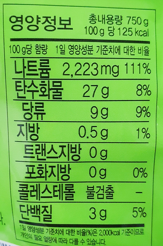 원재료명 및 함량
