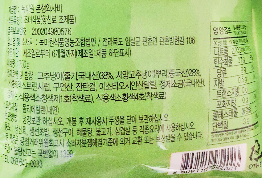 녹미원 본생와사비(CJ프레시웨이전용 750g/EA)